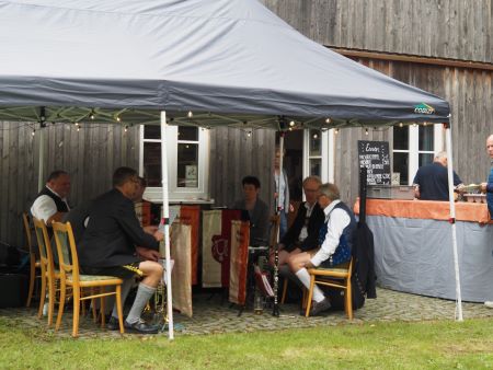Die Böllerschützen eröffneten das Dorffest und die Pellheimer Dorfmusi spielte auf. |